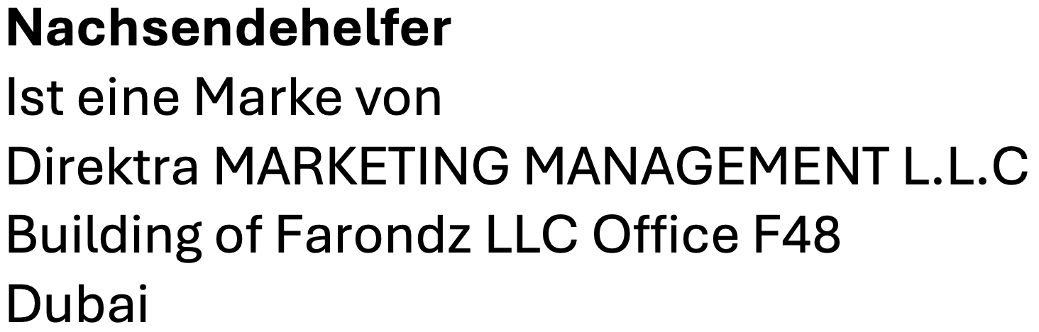 Wichtiger Hinweis: Wir sind ein unabhängiger Dienstleister für die Beantragung von Nachsendeaufträgen und weiteren Dienstleistungen. Deutsche Post, DHL, DHL Paket und Dialogpost sind eingetragene Marken der Deutsche Post DHL Group AG bzw. deren Tochtergesellschaften. Unsere Services und Produkte stehen in keiner Beziehung zur Deutsche Post DHL Group AG, deren Tochtergesellschaften und anderen Zustelldiensten.
